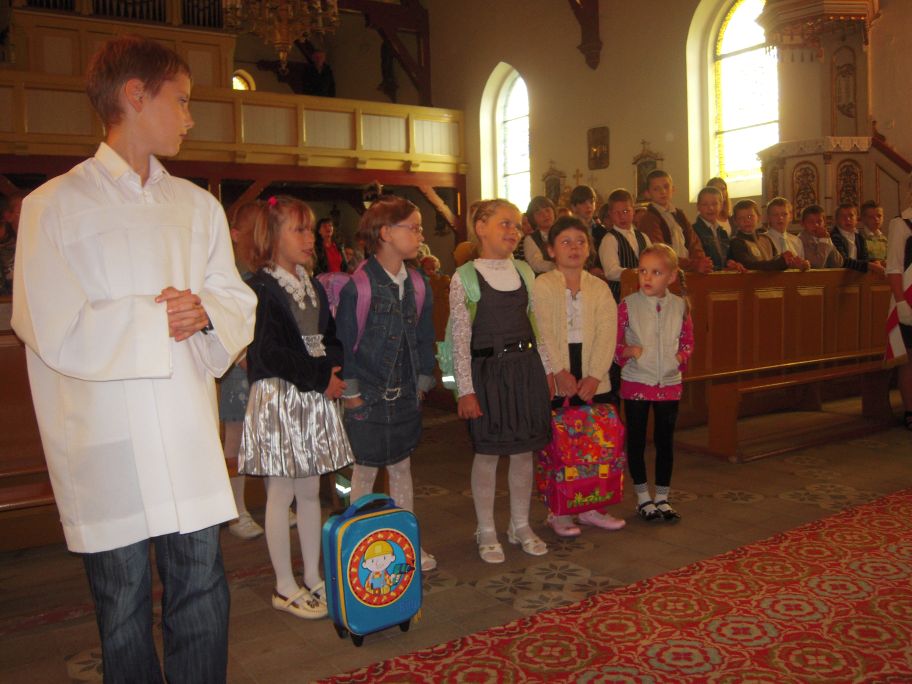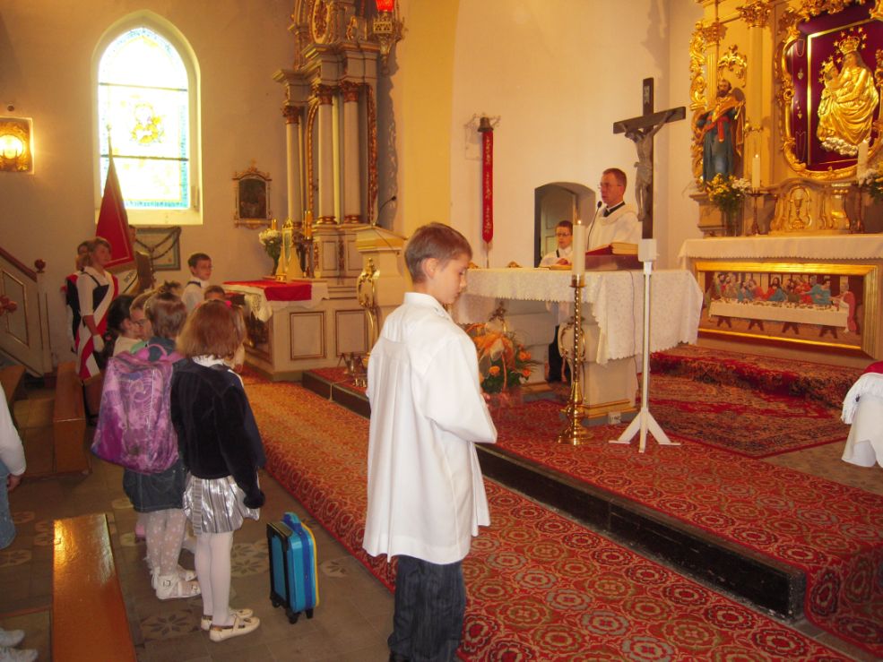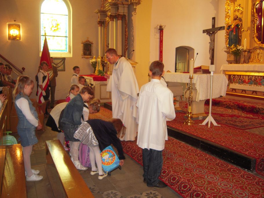 Wzruszającą częścią uroczystości była Msza Święta, na której Ks. Proboszcz poświęcił tornistry pierwszaków. Uroczystość była bardzo podniosła,