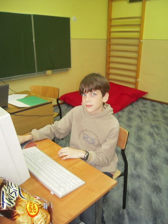 Pierwsze trzy zdjęcia, to wizyta naszych najmłodszych z klasy „0” w świetlicy, kolejne dwa to Trójka Klasowa i klasa IV z swoją wychowawczynią Panią Karoliną Podlaszewską. Na kolejnym zdjęciu widzimy naszą wspaniałą Panią Sekretarkę, dalej Maciek Kuffel i Kacper Wojciechowski przy świetlicowych komputerach, pod okiem Pani Danuty Leśniak na dziewiątym zdjęciu.