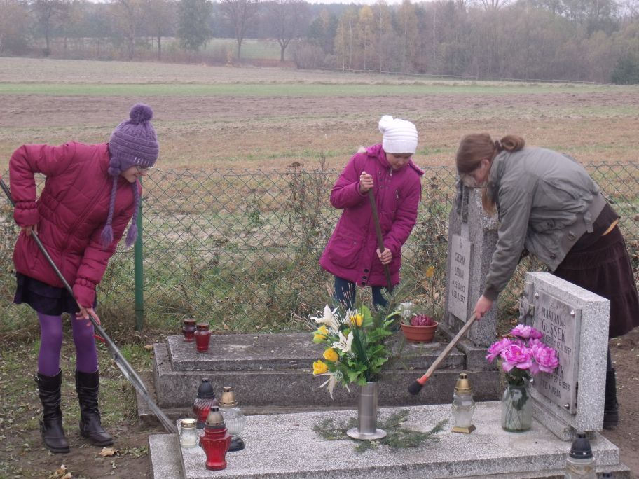 (p. Karoliną Podlaszewską, p. Lucyną Kolasa, p. Anną Szycą i p. Łukaszem Kozłowskim) zorganizował akcję "Sprzątanie Grobów".